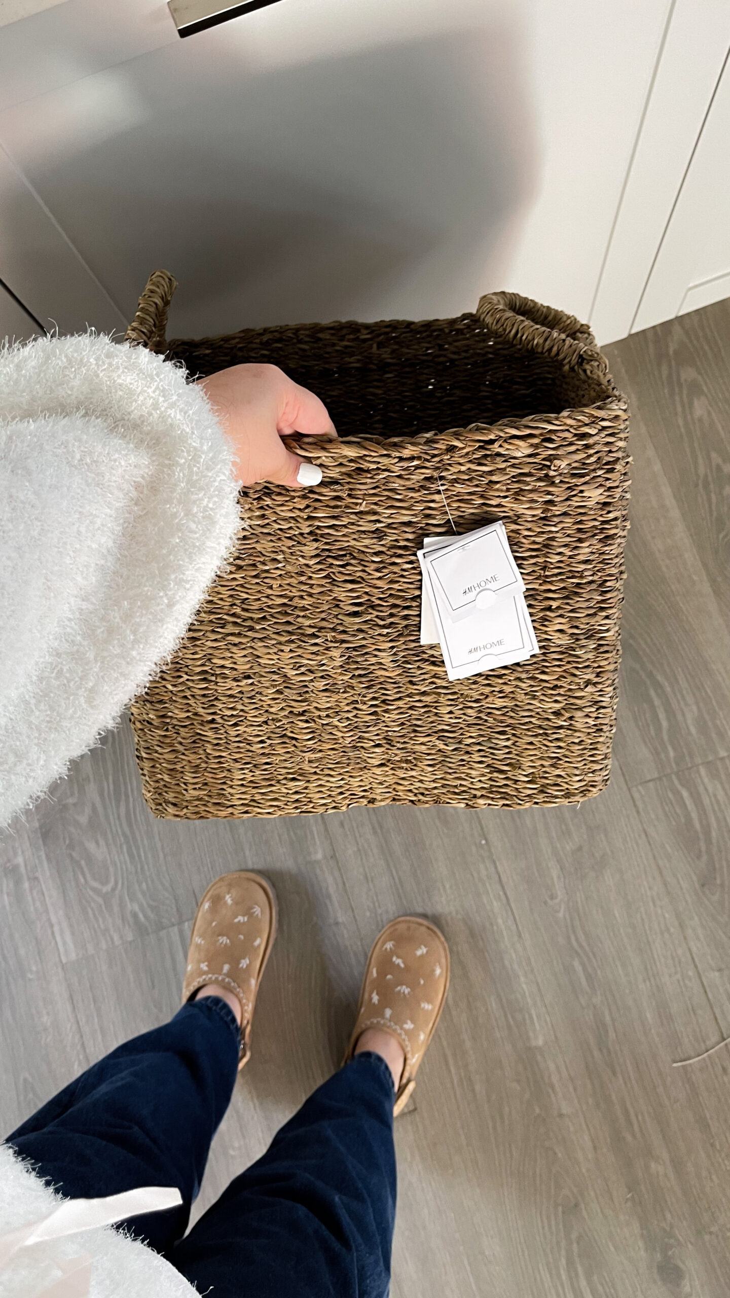 این سبد حصیری از برند H&M از جنس حصیر بافته شده است که استحکام و قوام بسیار بالایی دارد. الیاف حصیر به‌طور محکم بافته شده‌اند و هیچ ریزشی ندارند. ارتفاع سبد 35 سانتی‌متر است و دارای دو دسته مقاوم است که استفاده از آن را بسیار راحت می‌کند.
